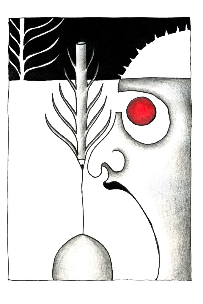 Weinend treibt die dunkle Schwärze das Rot in die Ecke, verbirgt nichts, als den Scham ohne Zweifel und mit großer Sorge um die Vergangenheit. Kohle fängt den fragmentarischen Suff ein und schwärzt und schwärzt und schwärzt den Nagel am anderen Ende der versifften Wand. Muster und Farbe verraten wenig über den eleganten Besitzer. Überdies schlägt die winzige, leicht übersehbare Kirchturmuhr viertel nach zehn. Die Zeit ist vorüber, sodass mikrige Quallen die Lichter blasen. Wenn die Situation faul wird, dann sind die Lichter schwarz. Wir sind im Land der schattigen Morellen.